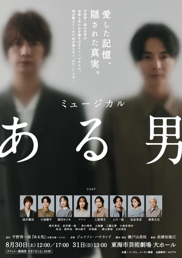 名古屋テレビ放送とその関連事業によって主催されるミュージカル『ある男』は、2025年8月30日(土)から31日(日)の間、東海市芸術劇場大ホールにて上演されます。公演には、俳優の浦井健治や小池徹平をはじめとする豪華なキャストが登場し、期待が高まっています。