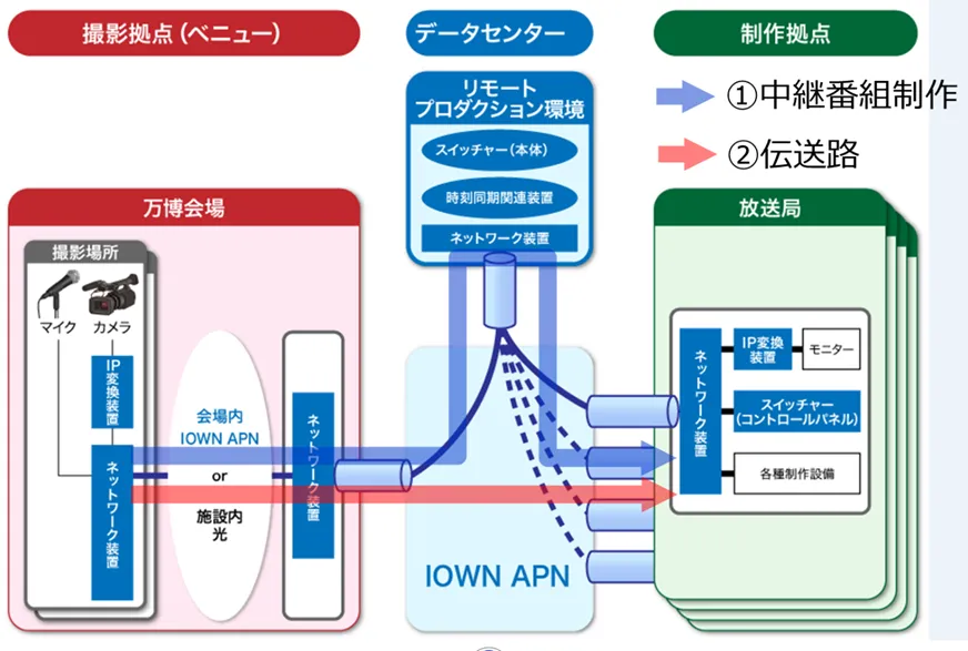 2025年に開催される大阪・関西万博では、NTT西日本グループが最新のテクノロジーを駆使してリモートプロダクションを実現しました。この取り組みでは、IOWN APN(Innovative Optical and Wireless Networkの一環)を活用した環境を提供し、いくつかの在阪放送局と共に成功裏に実証実験を行いました。