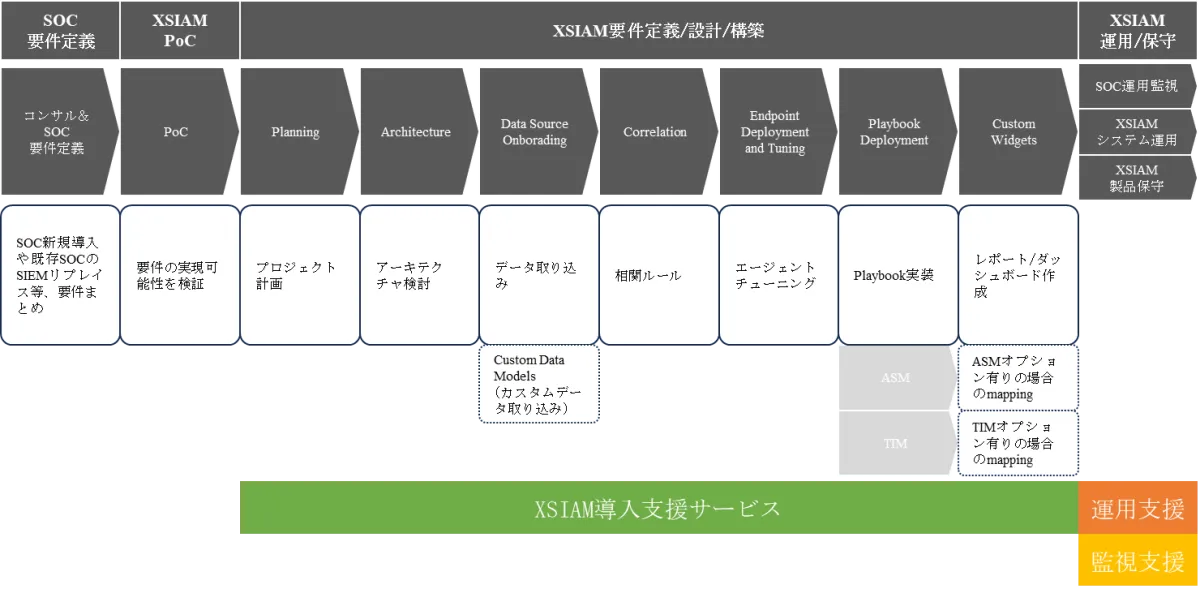 Cortex XSIAMを導入する過程における設計や構築、初期チューニングなどを支援します。これにより、企業がスムーズにセキュリティプラットフォームを活用開始できるようにします。
