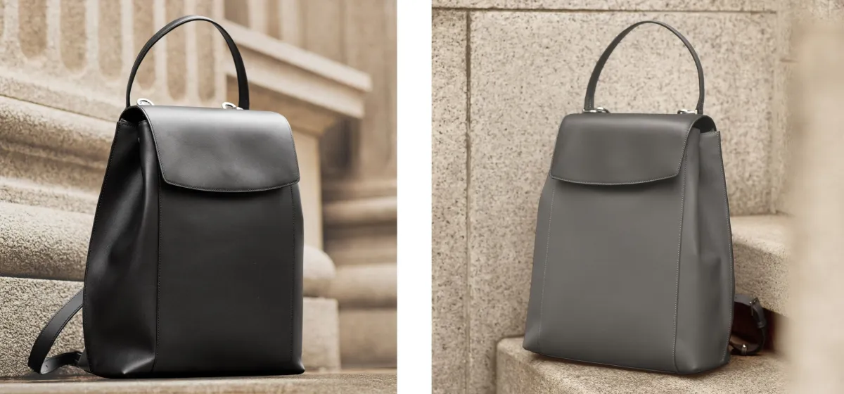 使用される素材は、LWG認証を取得したタンナーが手がける「セミマットスムースレザー」です。光沢を抑えたその質感は、シーンを選ばず自然に溶け込み、ビジネスにもオフスタイルにも適しています。このバックパックは、洗練された印象を与えつつ、実用的なアイテムとしても優れたパフォーマンスを発揮します。