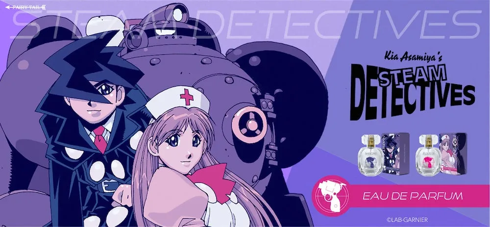 アニメや漫画の世界から飛び出し、今度は香水として私たちの元にやってきた『快傑蒸気探偵団』。メインキャラクターの鳴滝とその助手である周鈴々をイメージした香水が、フェアリーテイル株式会社からリリースされることが発表されました。香水と合わせてアクリルパネルやクリアファイルも同時に販売されるため、ファンには嬉しい商品となることでしょう。