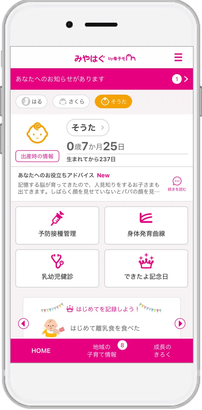 宮津市では、育児と健康管理をサポートするために『みやはぐ』が採用されました。このアプリは820以上の自治体で使用されている実績があり、安心して利用できるという特徴があります。以下にこのアプリの主な機能を紹介します。