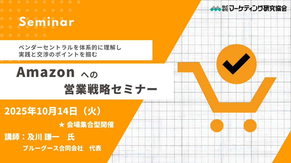 2025年10月14日、株式会社マーケティング研究協会が主催する「Amazonへの営業戦略セミナー」が開催されます。このセミナーでは、今もっともホットな営業戦略について取り扱い、特にAmazonベンダーセントラルに特化した内容が提供されます。近年、数多くのナショナルブランド(NB)メーカーが、売上拡大を目指してAmazonに進出していますが、中には卸経由での取引を行っているため、直接的な施策を打ちにくいという悩みも抱えている方々も多いのではないでしょうか。