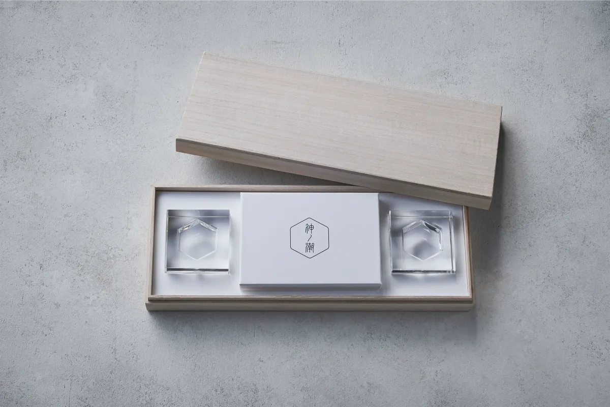 『神ノ潮』の特筆すべき点は、ガラス器が熟練した職人の手によって作られていることです。その光沢と透明感は、重厚感がありながらも美しさを醸し出しています。この器は一つ一つ丁寧に作り上げられており、盛り塩の器としては見たことがない唯一無二の美しいフォルムを実現しています。