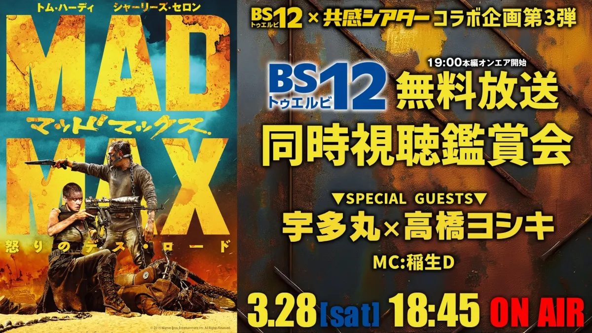 この3月28日、ぜひ『マッドマックス 怒りのデス・ロード』をBS12で楽しみ、YouTubeの同時視聴企画にも参加して、映画の新たな魅力を発見してみてはいかがでしょうか。