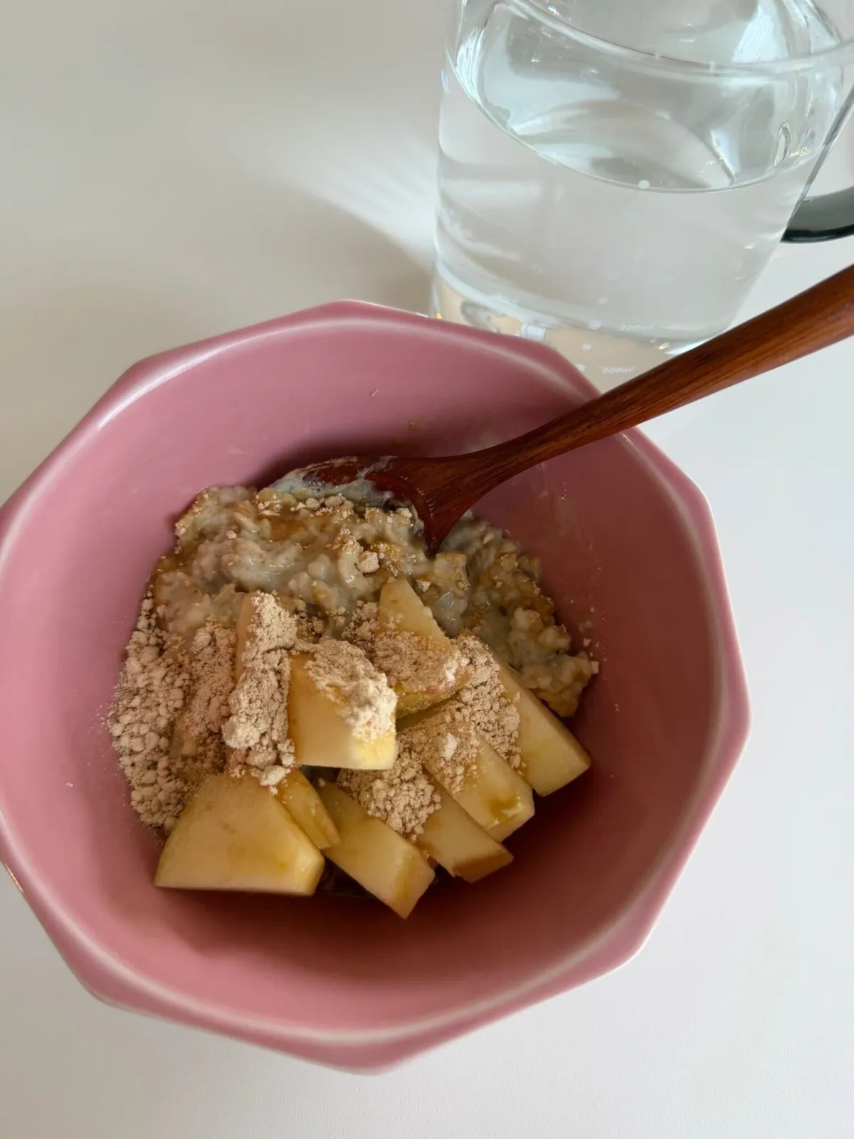 朝食は特に腸内細菌を意識して選んでいます。彼女のお気に入りはオートミールに青バナナやグリーンキウイ、ルミナコイドが豊富なパウダーを組み合わせたもの。多様な食材を意識して摂取することで、腸内細菌のエサをしっかりと補っています。