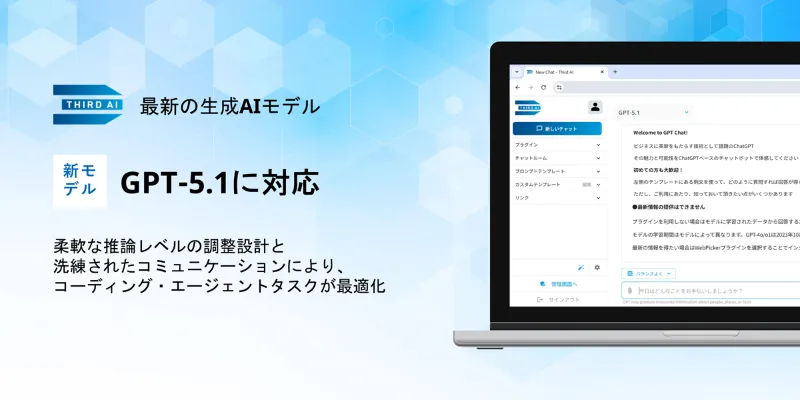 「Third AI 生成AIソリューション」では、既存のAIモデルに加えて最新のGPT-5.1にも迅速に対応しており、顧客企業の多様なニーズに最適なモデルを選べるようになっています。これにより、企業はビジネス上の課題に対してより効果的かつスピーディに解決できる可能性が広がります。