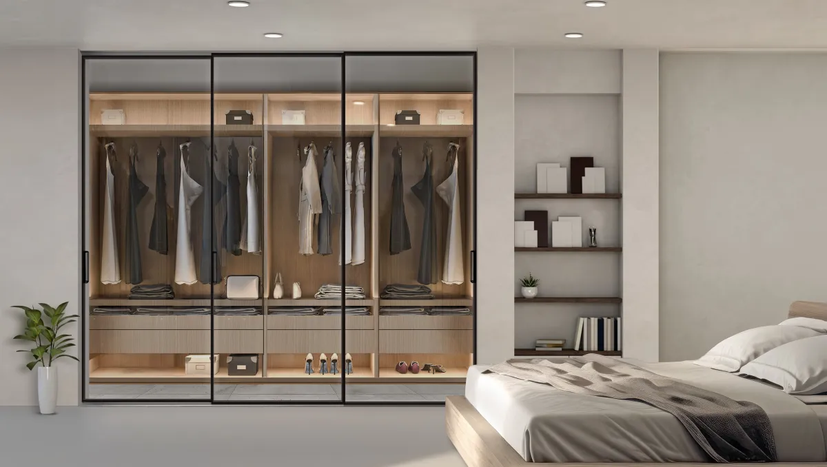 「FINA」は、業界で最も細いアルミフレームを持つスライドドアであることが最大の特徴です。一般的には、アルミフレームには3〜4cmの厚みが必要ですが、神谷コーポレーションはその常識を覆しました。試作を重ねる中で、金物の納まりを工夫し、実現可能な限界である1cmのスリムなフレームを実現。これにより「FINA」は、収納戸としての機能性だけでなく、洗練された空間を演出するガラスパーティションとしても利用可能です。高級住宅やマンションにぴったりとフィットし、おしゃれなインテリアとして多くの人々に受け入れられることは間違いありません。