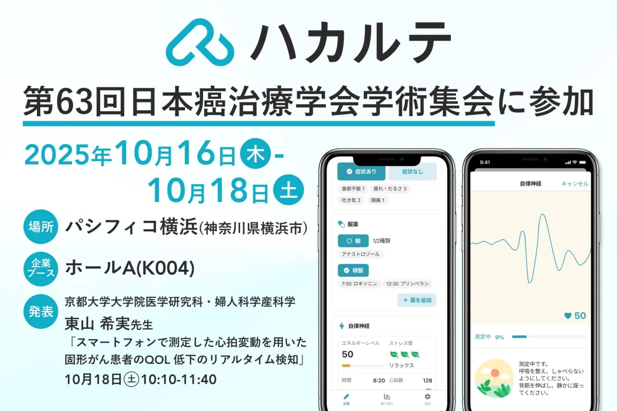株式会社DUMSCO(東京都港区、CEO:西池成資)は、2025年10月16日から18日の3日間、横浜で開催される「第63回日本癌治療学会学術集会」に参加します。この会議は、がん患者の生活の質向上を目指す「ハカルテ」というサポートアプリを提供する当社にとって重要な機会です。