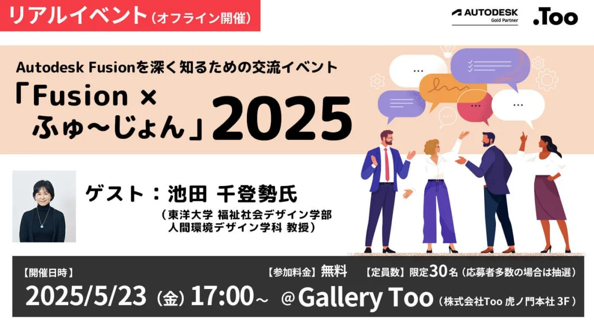 2025年5月23日、東京・虎ノ門にて、「Fusion × ふゅ〜じょん」2025が開催されます。このイベントは、Autodesk Fusionを利用している方やその活用に興味がある方々を対象にした脈々と続く交流の場です。主催するのはクリエイティブ市場の総合商社である株式会社Tooです。
