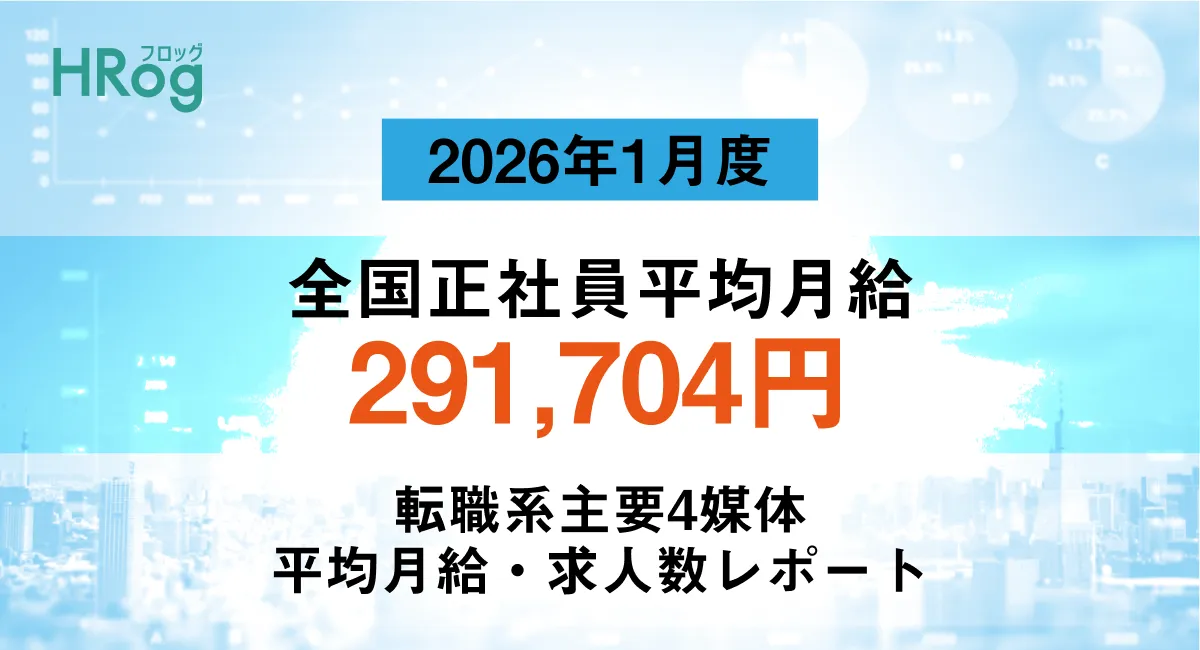 株式会社フロッグは、2026年1月度の正社員平均月給に関するレポートを発表しました。それによると、全国の正社員平均月給は291,704円と、前年同月比で6,344円の増加を見せています。また、求人数も前年同月から30,565件増えて314,640件に達しました。
