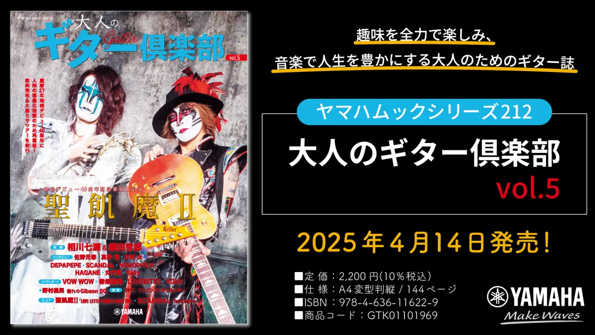 2025年4月14日に、株式会社ヤマハミュージックエンタテインメントホールディングスから「ヤマハムックシリーズ212 大人のギター倶楽部vol.5」が発売されます。この新刊は、大人世代の音楽愛好者に向けた特集号となっています。