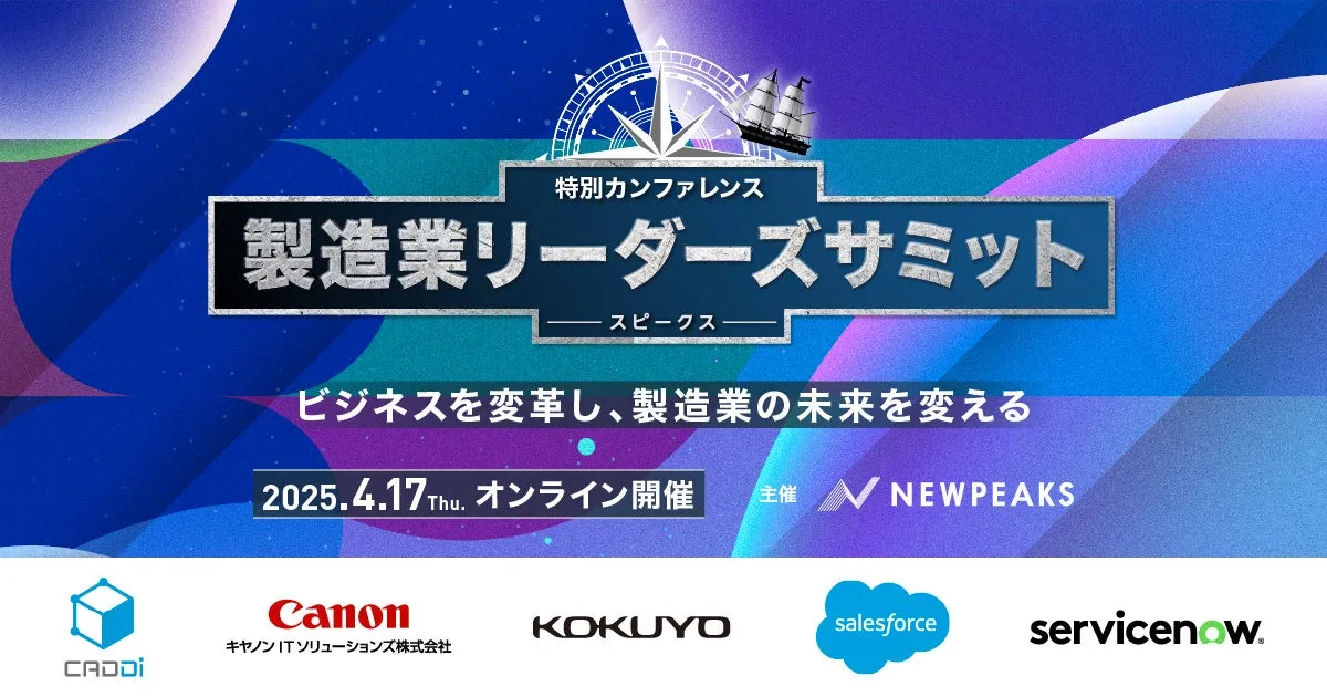 2025年4月17日、オンラインで「SPEAKS ‐ 製造業リーダーズサミット ‐ 」が開催されます。主催するのは株式会社ニューピークス。このサミットは、日本の製造業が抱える課題に焦点を当て、未来を見据えたイノベーションを探る貴重な機会です。