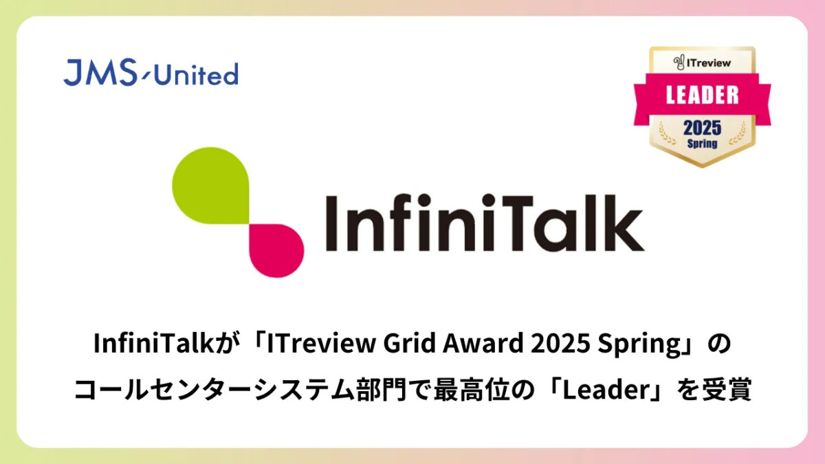 インパクトホールディングスの一員であるジェイエムエス・ユナイテッド株式会社が提供するクラウド型コールセンターシステム「InfiniTalk」が、ITreviewによって評価され、「ITreview Grid Award 2025 Spring」のコールセンターシステム部門で最高評価の「Leader」を受賞しました。この受賞は、約13.4万件のリアルなユーザーレビューに基づいており、顧客満足度と認知度の両面から得られた称号です。