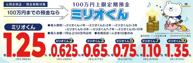 株式会社SBJ銀行が本日より1年もの定期預金金利を大幅に引き上げることを発表しました。これにより、100万円上限の定期預金「ミリオくん」のお客さまに対してより魅力的な条件が提供されることになりました。現在の金利は0.6%から1.25%へと上昇します。安定した資産運用を希望する方々には朗報です。