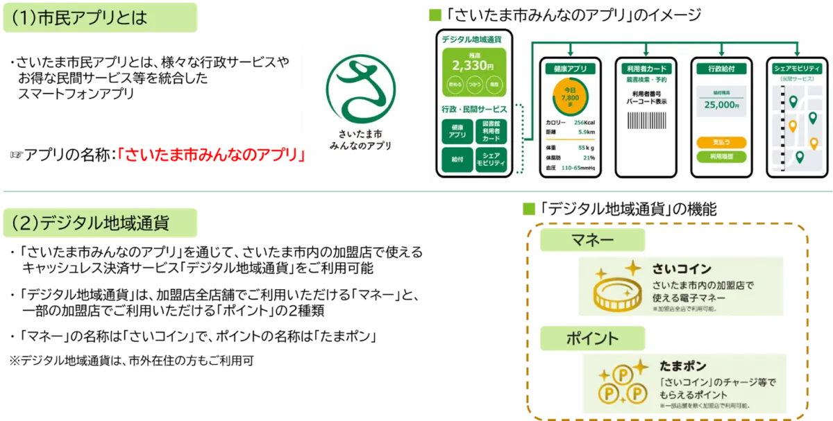 「さいたま市みんなのアプリ」の普及促進:このアプリは、デジタル地域通貨を含む多彩な行政サービスや民間サービスをまとめたプラットフォームです。市民への広報を強化し、誰もが利用しやすい環境を整えます。