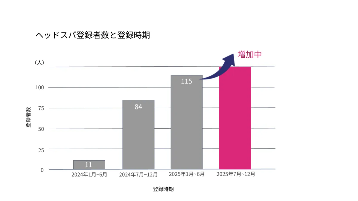 2023年から2025年にかけてのBEAUTY SHAREへの登録データからは、ヘッドスパを提供する施術者が年々増加していることが見て取れます。