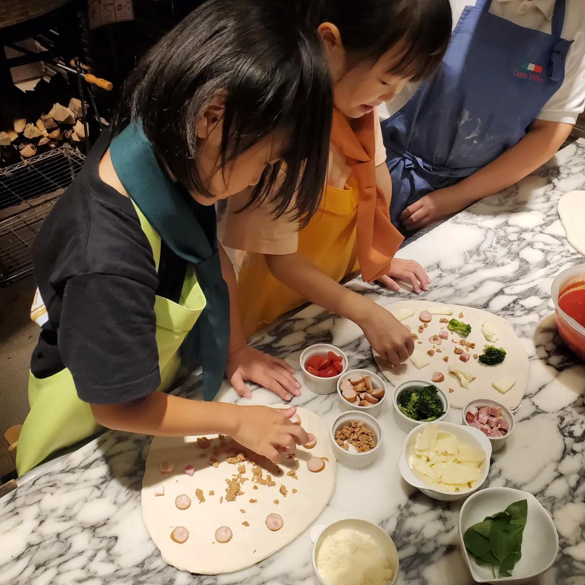 体験教室は以下のような流れで進みます。参加者は、ピッツァの生地からトッピング、焼き上げまでの過程を楽しむことができます。