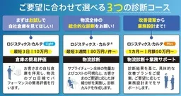 - - ロジスティクス・カルテPlus:前述のロジスティクス・カルテを基に、診断結果に対し具体的な改善プランを提案。数カ月をかけて業務設計も行い、実行可能な改善策を提示します。