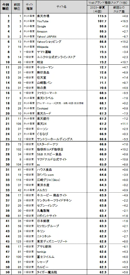 この調査は、Webサイトのブランド力や企業の好感度、製品への関心などの指標を測定することを目的としています。今後の企業戦略を考えるうえでも非常に重要なデータといえるでしょう。報告書は2025年6月20日に発行され、年に2回、春夏編と秋冬編として更新されます。