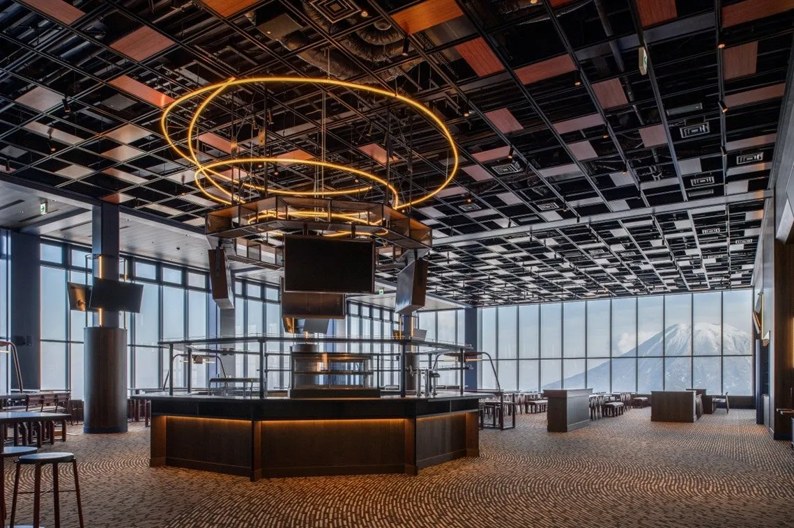「NEST813」は、エースゴンドラ山頂駅舎の2階に位置し、「大自然の巣」をテーマにした新しいレストランです。標高813メートルの場所から見る景色は圧巻で、特に羊蹄山の姿は訪れる人々を魅了します。このレストランは380席の広さを誇り、和牛ローストビーフや焼きたてのパン、北海道産の食材を使ったすべてのメニューが特徴です。音響設備やAI自動精算機も完備され、快適な食事体験を提供します。