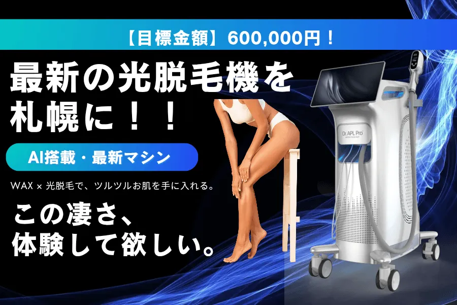 菅野オーナーは、自身がARTISTIC&CO.社の「Dr.APL Pro」による施術を受け、肌の状態が改善される実感を得ました。そこで、札幌にいる顧客にもこの喜びを提供したいと考え、銀行融資ではなくクラウドファンディングを選択しました。「お客様からの『ワックスは施術後すぐに効果が感じられるが、生えてくるのが気になる』という声に共感し、それを解決するために新しいコンセプトを考えました」と語ります。