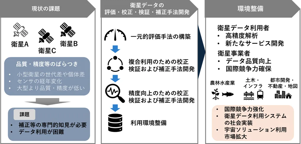 これらの技術開発を通じて、小型衛星データの国際競争力の強化と利用市場の拡大を目指します。特に、質の高い衛星データの提供は、地球環境や災害対策、農業、都市計画など、幅広い分野での社会課題解決にも貢献することが期待されています。