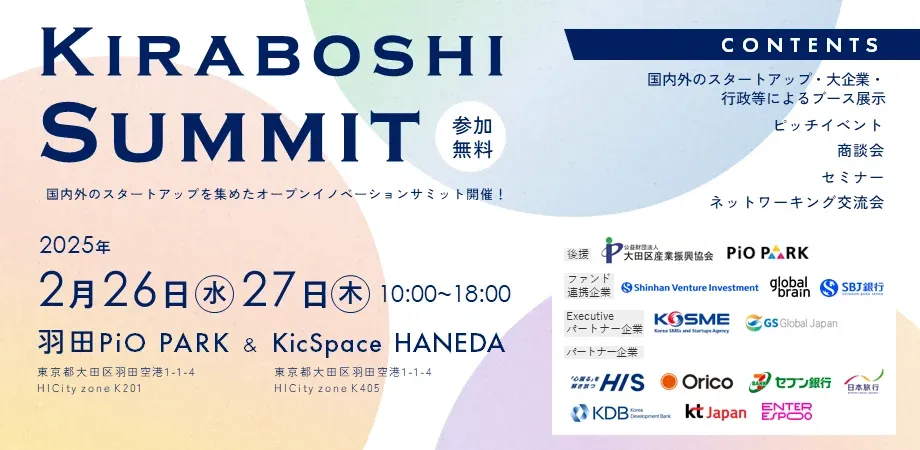 株式会社Urth(本社:東京都新宿区、代表取締役:田中大貴)は、2025年2月26日(水)・27日(木)に東京都大田区羽田空港内で開催されるオープンイノベーションサミット「Kiraboshi Summit」に出展することを発表しました。このサミットは東京きらぼしフィナンシャルグループが主催し、国内外から多彩なスタートアップや企業が一堂に会する貴重な機会となります。