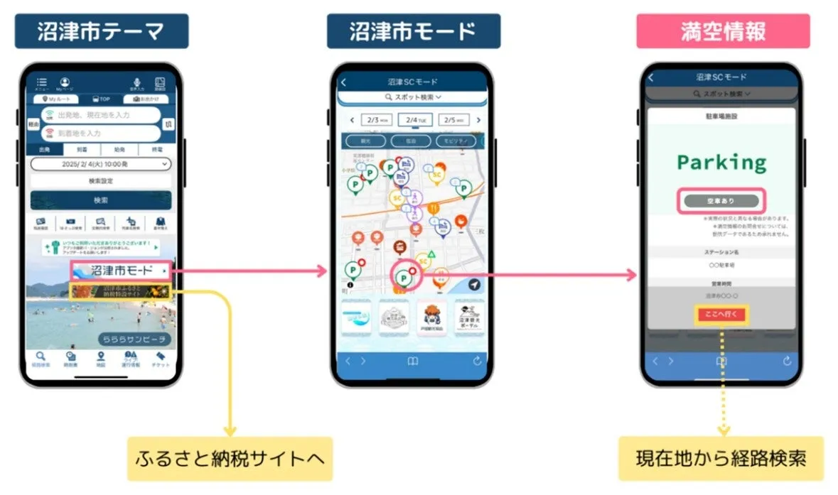 駐車場情報: 沼津市中心街から沼津港エリアまでの駐車場の満空情報を提供し、訪問者がスムーズに移動できる環境を整えました。