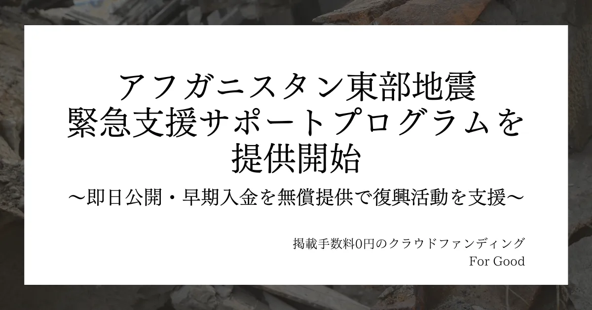 最近、アフガニスタン東部で発生したマグニチュード6.0の地震は、多くの人々に深刻な影響を与えました。この状況を受けて、株式会社ボーダレス・ジャパンが運営するクラウドファンディングサービス「For Good」が、緊急支援サポートプログラムを開始しました。このプログラムは、災害時に迅速に対応すべく設計されており、社会をより良くするための活動を支援します。