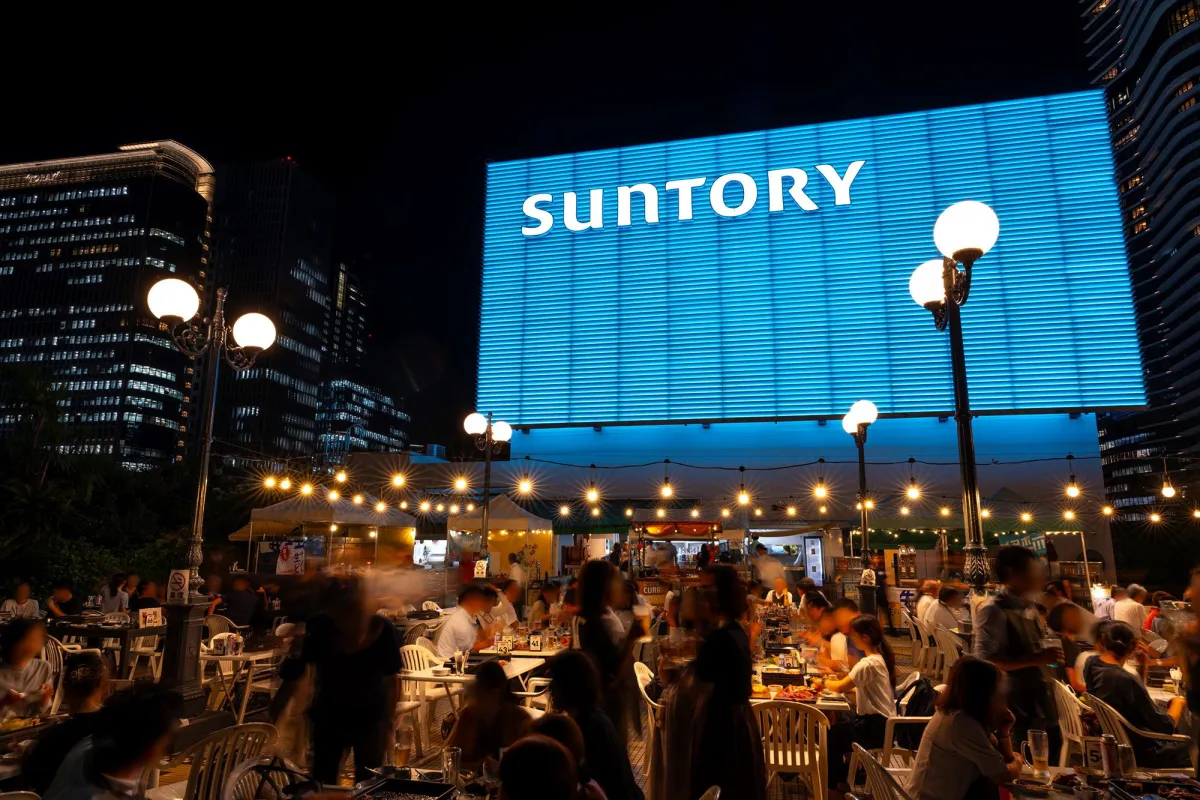 今年のビアガーデンテーマは、「水色輝く「SUNTORY」の灯りの前で仲間と乾杯!『ワールドBBQとサントリービールを楽しむビアガーデン』」です。テーマに合った特別な雰囲気の中で、友人や家族とともに乾杯する楽しさを体験できます。