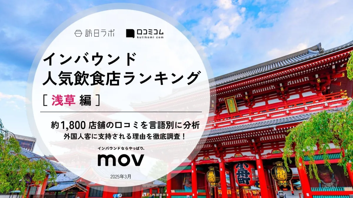 東京都の観光地として名高い浅草。そこで、外国人観光客に特に人気の飲食店を独自に調査した結果、注目のランキングが発表されました。やはり、観光名所といえば美味しい食事は欠かせません。今回の調査は、業界最大級のインバウンドビジネスメディア「訪日ラボ」および、店舗向け集客プラットフォーム「口コミコム」が実施したもので、浅草エリアの1,755店舗を対象にしました。