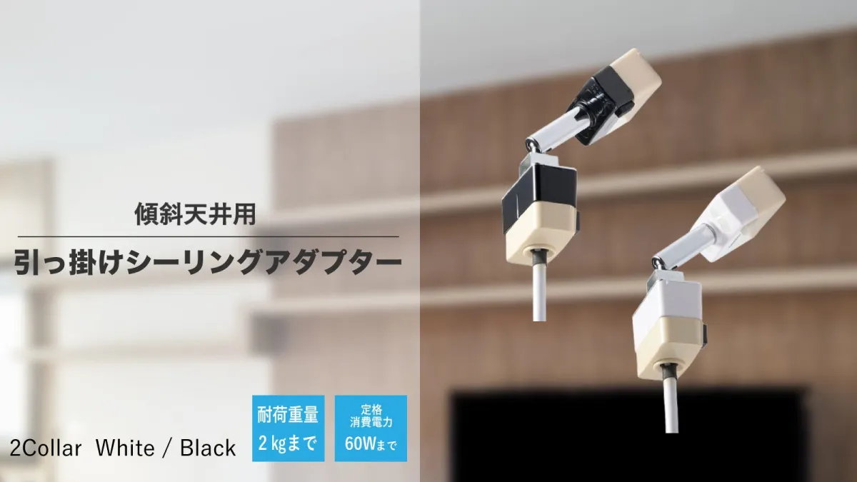 株式会社ヤザワコーポレーションは、照明器具を傾斜天井に取り付けるための引っ掛けシーリングアダプターを新しく発売しました。この商品は、傾斜のある天井に設置された引っ掛けシーリングへ簡単に取り付けることができ、照明の角度を自在に調整できることが特徴です。