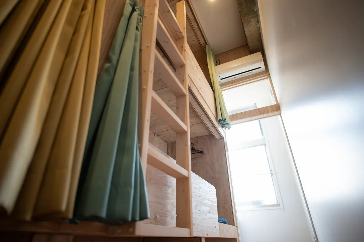 割り当てられている共有スペースには、男女別の清潔なトイレやシャワー室、パウダールームが完備されています。また、冷蔵庫や電子レンジ、湯沸かし器などの設備が整った共有エリアで軽食を楽しむこともできます。ベッドにはライトとコンセントも備わっており、夜の読書やスマートフォンの充電も簡単です。