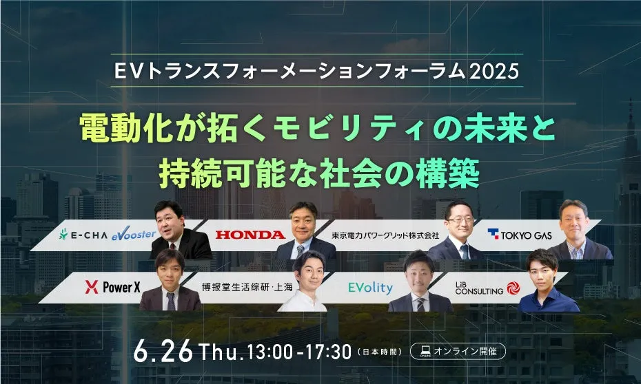 2025年6月26日、株式会社リブ・コンサルティングが主催する「EVトランスフォーメーションフォーラム2025」がオンラインで開催されることが決定しました。モビリティとエネルギーの融合をテーマに、電動化がもたらす未来の可能性を探ります。このフォーラムには、本田技研工業や東京電力、東京ガスなど、多くの業界リーダーが登壇し、最新の取り組みやビジョンを発信します。