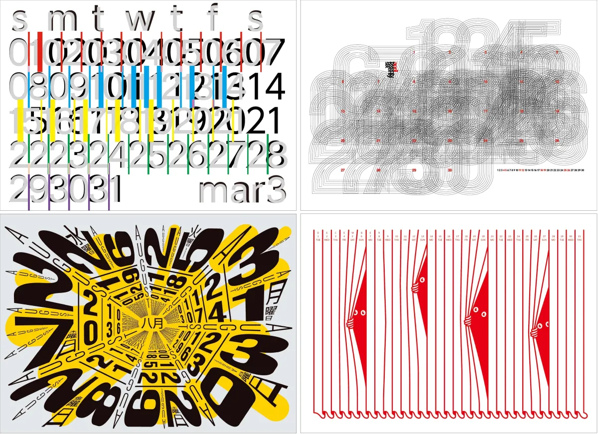 「Kerning」は、欧文書体における文字と文字の間隔を示す専門用語で、視覚的なバランスを整えるための重要な要素です。このカレンダーでは、「Kerning」をテーマに、世界中から集まった12名のデザイナーがそれぞれの視点で“一年を彩る一枚”を表現しています。