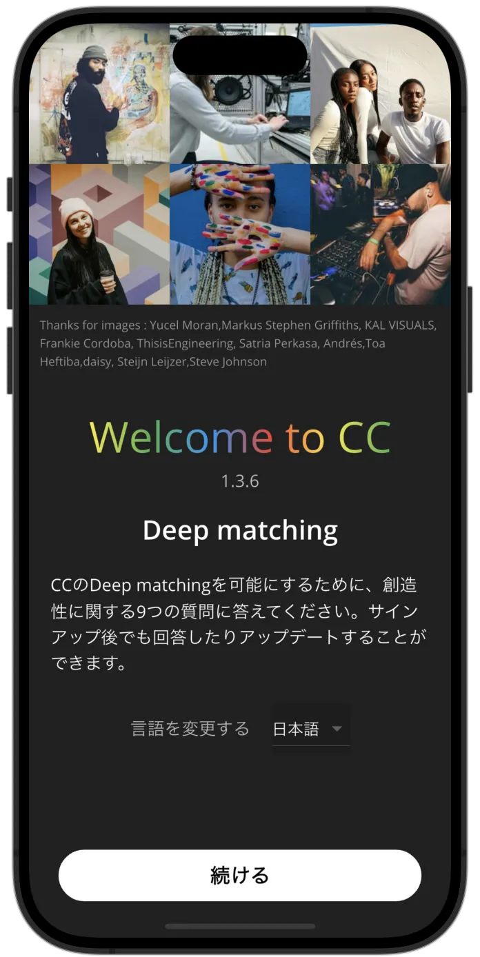CCの最大の特徴は、単なる作品の共同制作にとどまらず、価値観を共有するクリエイター同士が真に協力できるような「Deep matching」を実現することです。これにより、単なる外見的なプロフィールではなく、深いレベルでの価値観の一致に基づいたマッチングが可能となります。その結果、クリエイターたちはより意義のあるコラボレーションを行うことができるのです。