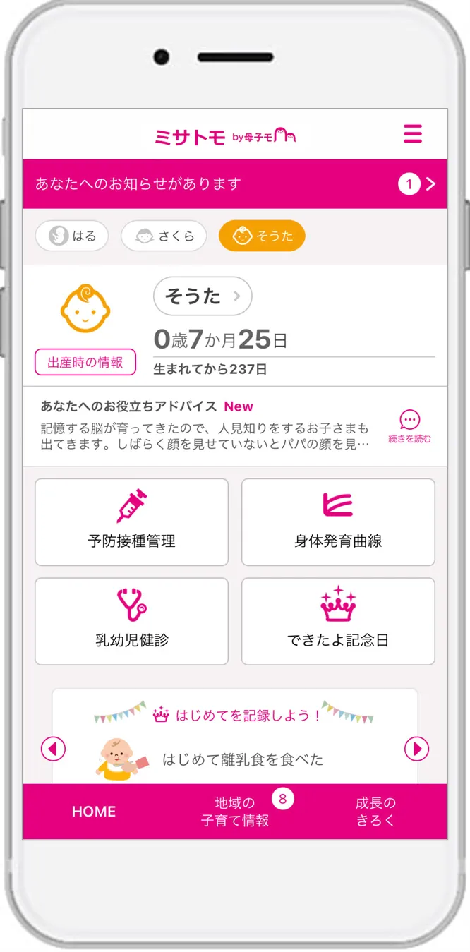 『母子モ』は、スマートフォンやタブレット、PCに対応したアプリで、妊産婦および子どもの健康データを管理する機能が充実しています。具体的には、予防接種のスケジュール管理や出産・育児に関するアドバイスの提供があり、ユーザーは育児に関する情報を簡単に取得できます。その中でも注目すべきは、家族との情報共有機能です。遠方に住む祖父母などと一緒に子どもの成長を見守ることができる贅沢な機能です。