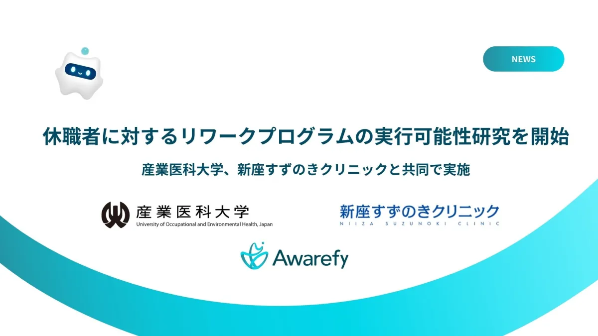 株式会社アウェアファイ(本社:東京都新宿区、代表取締役 CEO 小川 晋一郎)は、産業医科大学との連携により、休職者の職場復帰をサポートするためのリワークプログラムの実施可能性の研究を開始しました。この新たなプログラムは、医療リワークプログラムとスマートフォンアプリケーションを活用した自己学習を組み合わせたハイブリッド型です。