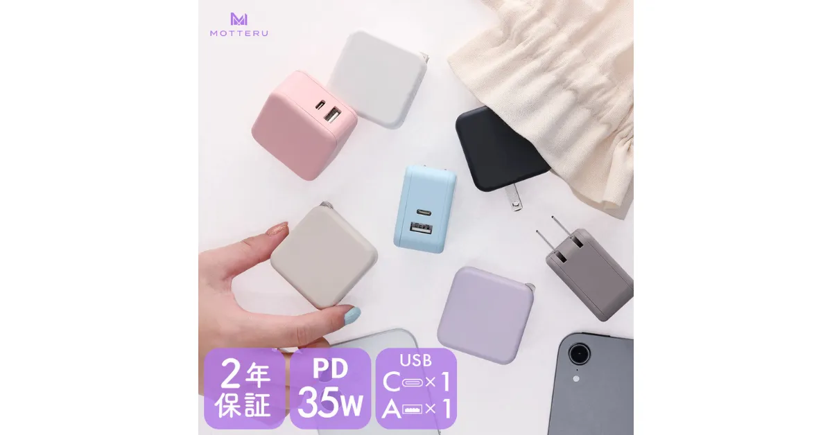 MOTTERU株式会社(モッテル)は、旅行や帰省にぴったりな新色のAC充電器を発表しました。この充電器は、パワーデリバリー(PD)35Wに対応した2ポート(USB-CおよびUSB-A)を備えており、急速充電が可能です。新色は、パウダーブルー、シェルピンク、スモーキーブラック、エアリーホワイトの4色で、既存の3色と合わせて計7色からお好みのカラーを選べます。