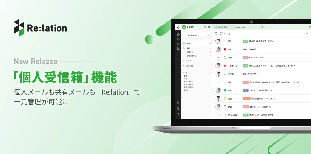 コミュニケーションプラットフォーム『Re:lation(リレーション)』は、これまでに6,000社以上の企業で導入されてきた実績を持つ。運営元の株式会社インゲージがこの度、新機能「個人受信箱」をリリースした。この新機能は、企業内のコミュニケーションを一層円滑にし、業務の効率化を図る目的で開発されたものである。