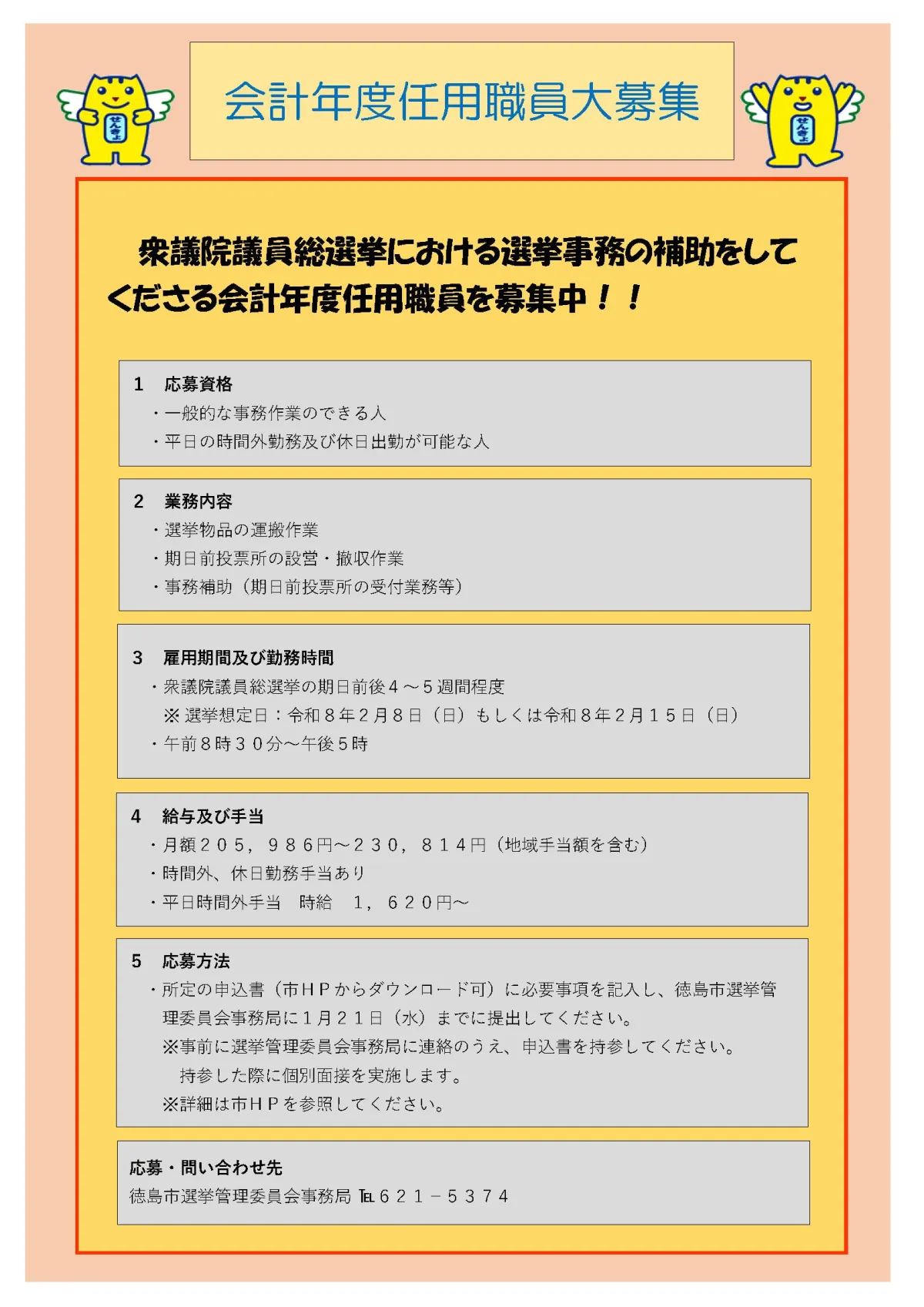 詳しい情報は、徳島市の公式ホームページを参照してください。選挙業務に関心がある方、多くのご応募をお待ちしております。