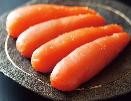 福岡の明太子は韓国から伝わった食べ物です。スケトウダラを原料としており、韓国では「明太(ミョンテ)」と呼ばれることから、その卵巣である「明太子」という名がつきました。日本に伝わってからは、針や発酵を使った韓国の伝統的な製法ではなく、調味液に付け込む方法が一般的になりました。戦後、日本に帰還した日本人が、韓国の味を改良して販売した福岡の博多地区が、今や明太子の本場として知られています。