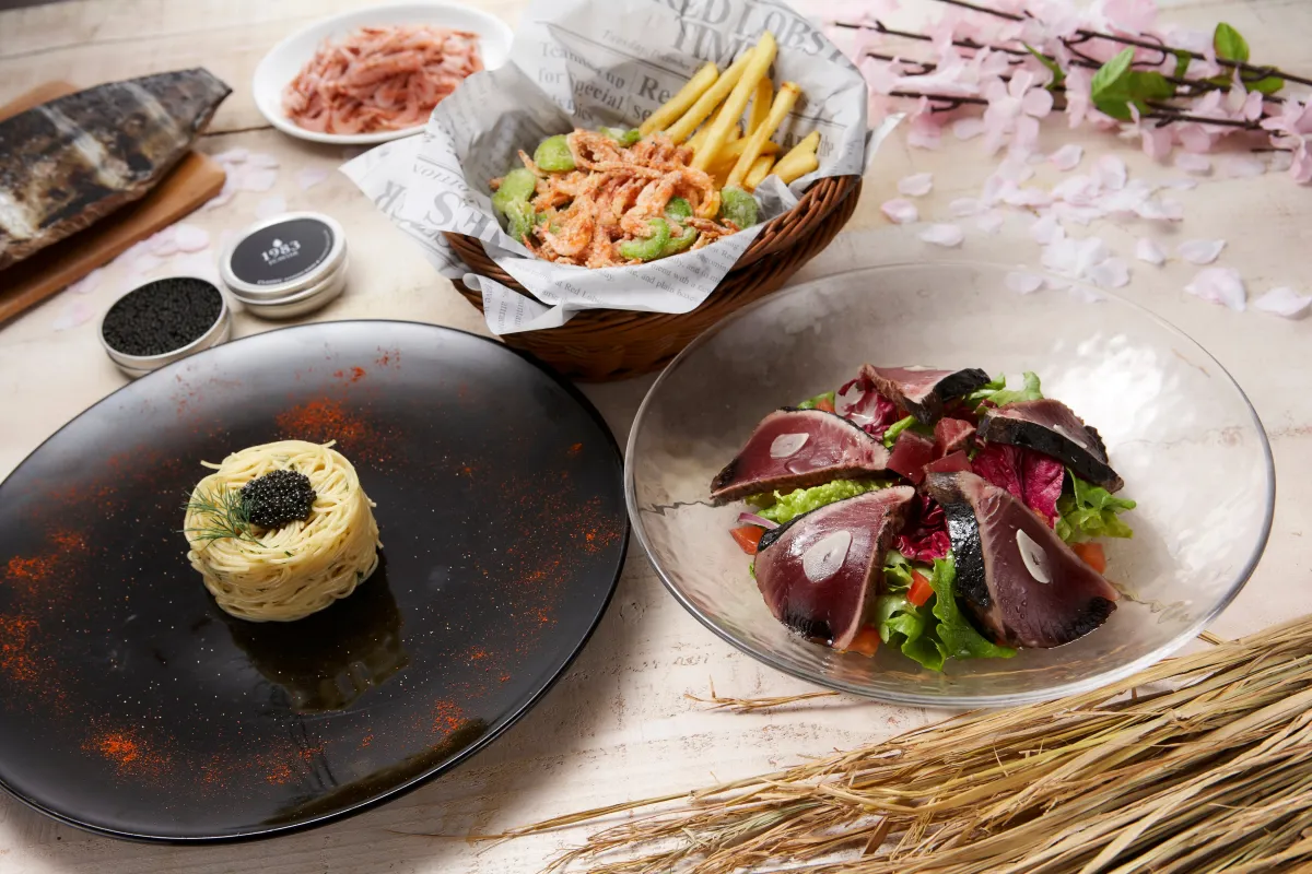 土佐鰹を使用したカルパッチョは、国産藁で燻製された新鮮で風味豊かな一皿です。土佐の伝統的な一本釣りで釣り上げられた土佐鰹は、美味しさと香りを引き立てるエクストラバージンオリーブオイルで仕上げられています。また、高知県産の海洋深層水で作った塩「龍宮のしほ」を合わせることで、さらに贅沢な美味しさを楽しめます。