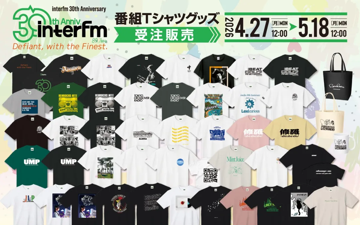 東京を中心に放送するinterfm(88.7MHz)は、開局30周年を迎えるにあたり「Defiant, with the Finest.」と「Anniversary」をテーマにしたオリジナルTシャツと番組グッズを販売するキャンペーンをスタートします。