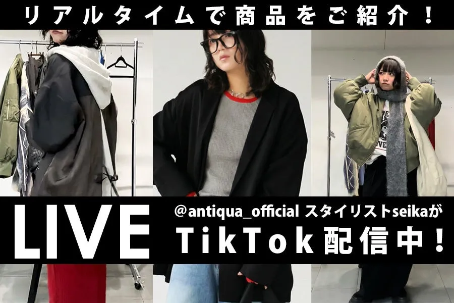 TikTok LIVEに登場するのは、antiquaのスタイリストたちです。彼らは自らが手がけたスタイリングを実況するだけでなく、その服が持つ特性やおすすめポイントを詳しく解説します。