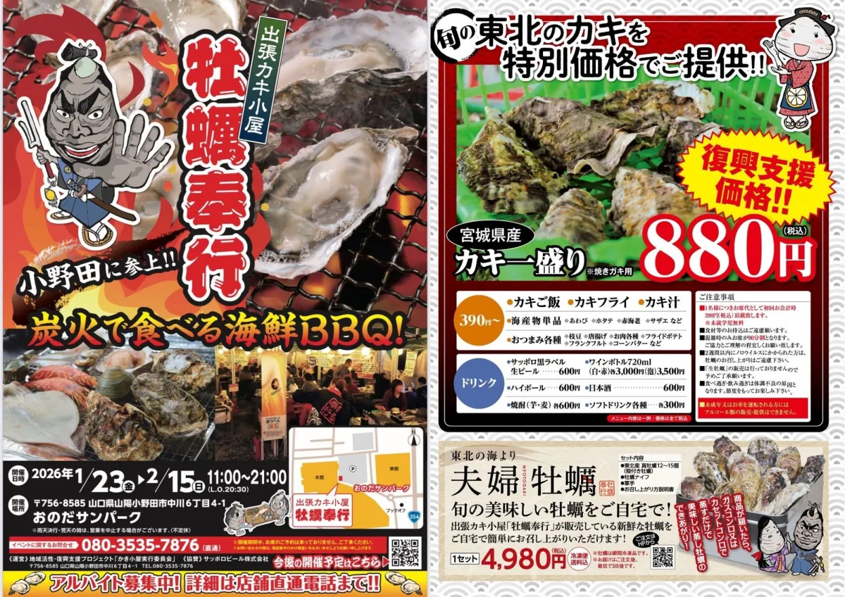 この冬、山口県小野田での『出張カキ小屋』へ足を運んでみてはいかがでしょうか?新鮮な牡蠣や海の幸を満喫しつつ、震災支援にも目を向けてみる良い機会です。