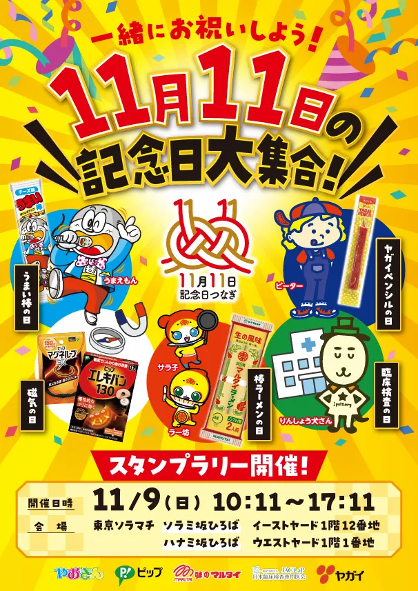 2025年、11月11日を楽しく盛り上げる「11月11日記念日つなぎ委員会」のイベントが、東京スカイツリータウン®にて開催される。この特別な日は、ピップ株式会社、株式会社マルタイ、やおきん、一般社団法人日本臨床検査専門医会、ヤガイなど、異業種の企業が集まり、一日限りのスタンプラリーを実施。親子や友人同士で、感動と思い出を共有するチャンスが待っている。