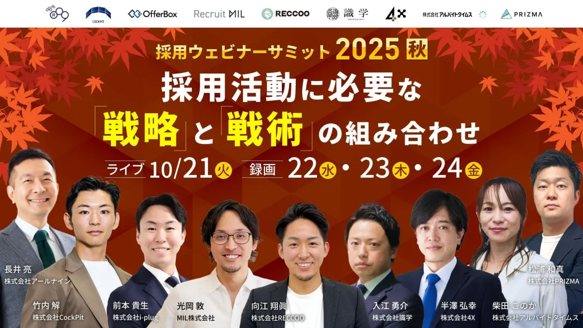株式会社4Xは10月21日に「採用ウェビナーサミット 2025 秋」を開催します。このウェビナーは、近年の採用市場において必要とされる『戦略』と『戦術』を組み合わせたアプローチを学ぶ絶好の機会です。セミナーの参加は無料で、特にZ世代に心を掴む方法について具体的に解説されます。