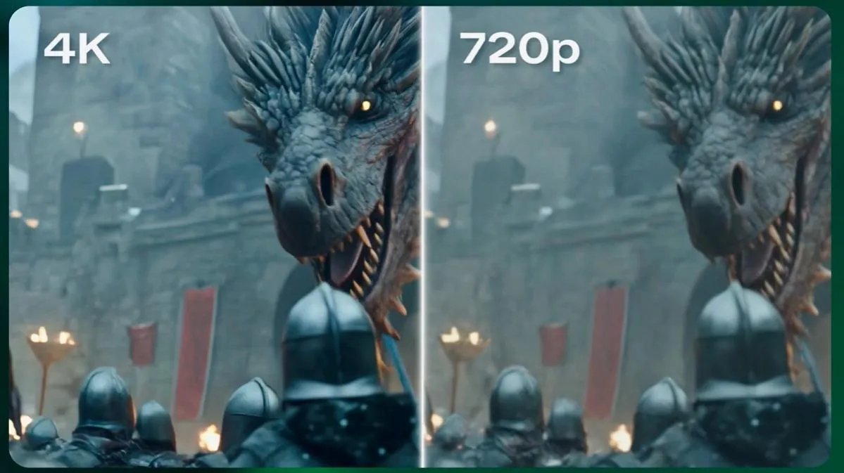 KlingAIが生成したネイティブ4K動画は、従来の技術に比べて解像度が大きく向上し、画面のディテール表現も非常に豊かです。特に、高速動態を撮影した映像では、ドラゴンの鱗や衣類の質感など、動きの中での細部がリアルに描写されています。さらに、遠くの建物のディテールまでも鮮明に認識でき、まさに映画館で見るような臨場感を実現しています。